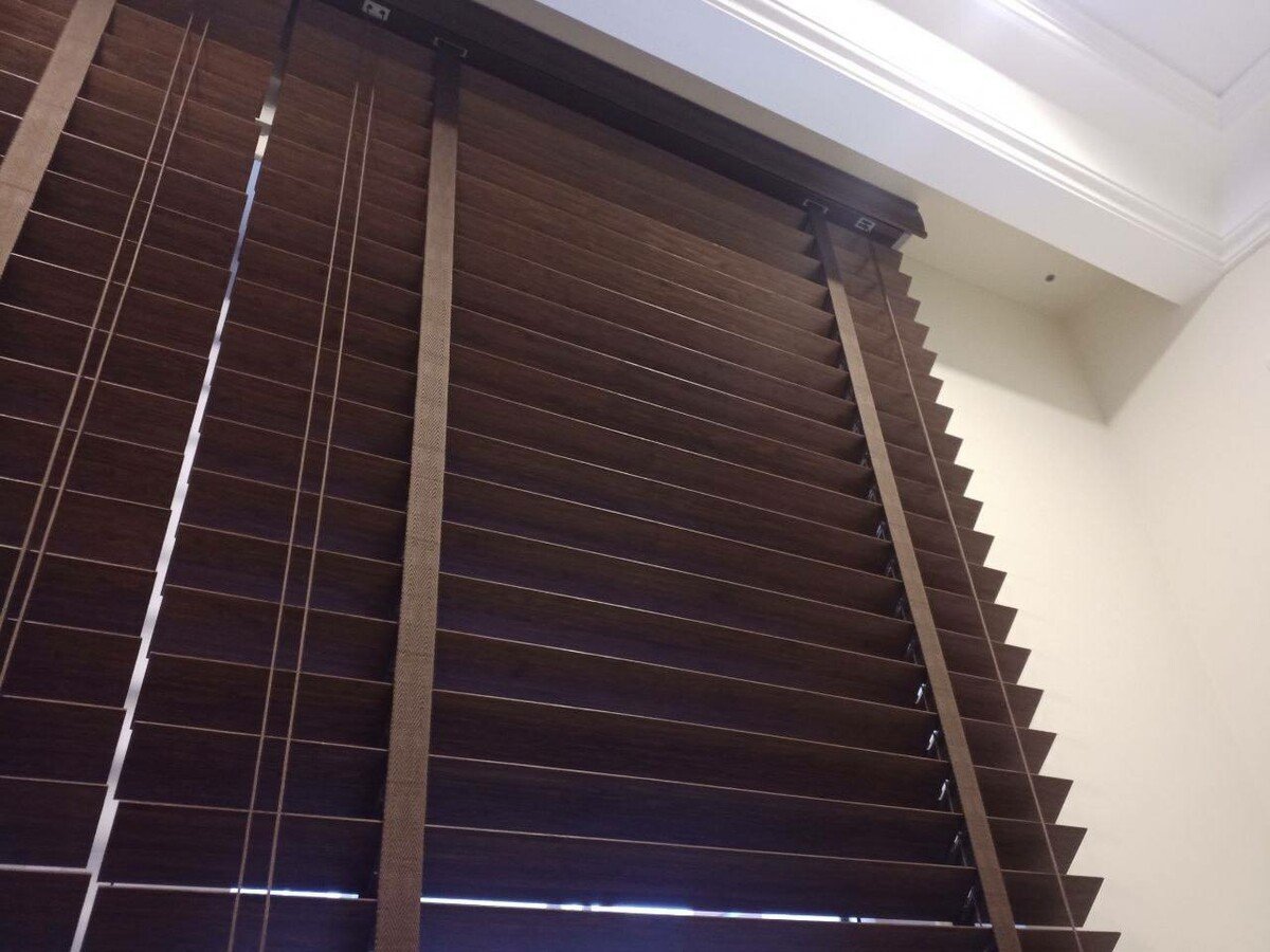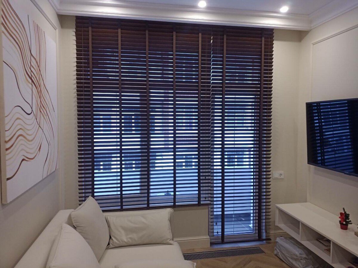 Деревянные жалюзи 50 мм. темный дуб, 50−70