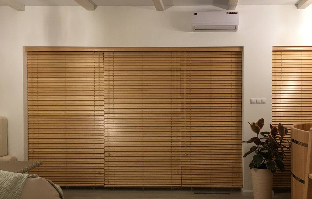 Деревянные жалюзи 50 мм. золотой дуб, 50−50